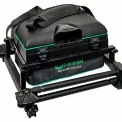 Onder het aluminium frame bevindt zich een uitschuifbare lade van 140 mm diep om klein visgerei in op te bergen.